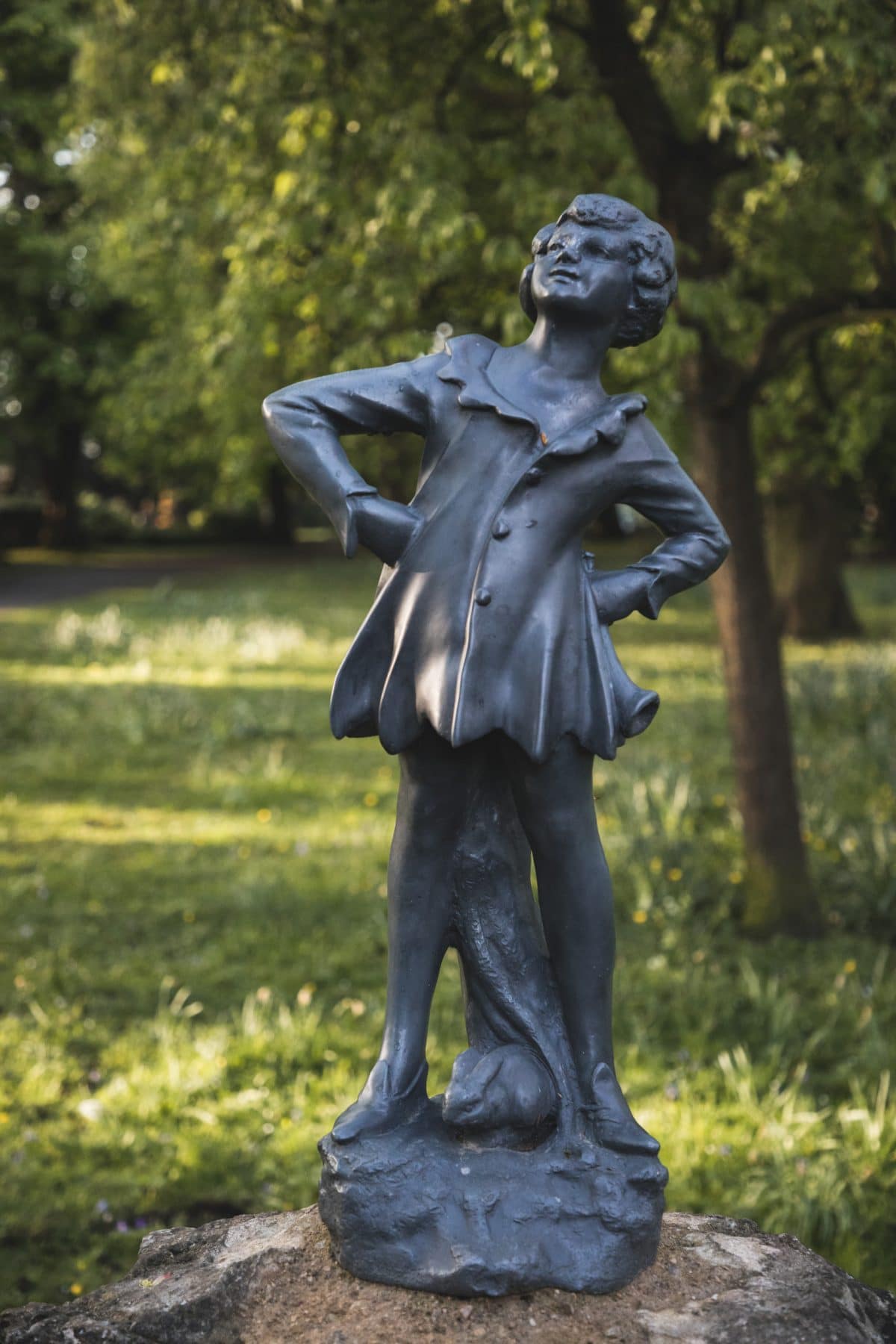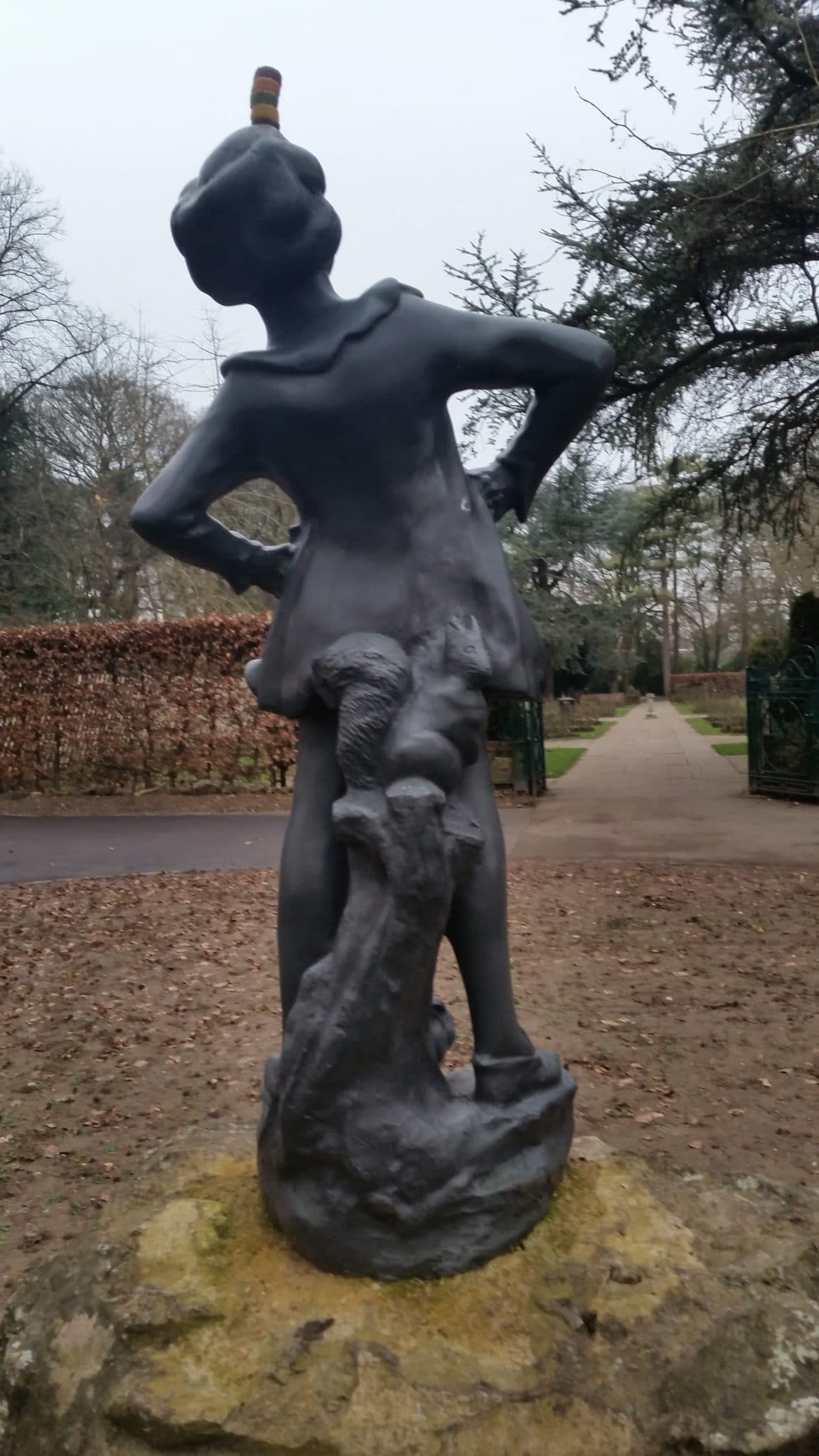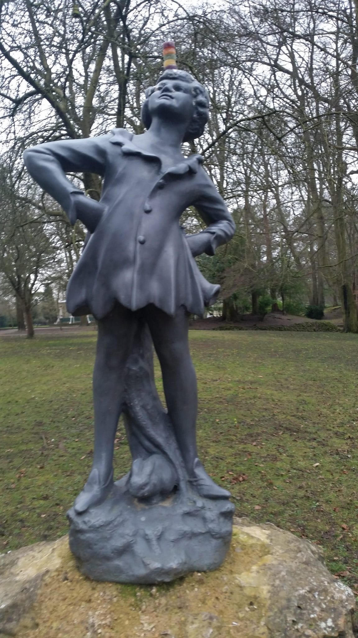 Below you see Peter Pan. Sporting not only his head but some pastilles on his head! I mention this because back in 2011 the statue suffered a beheading. This BBC News article has the full story.