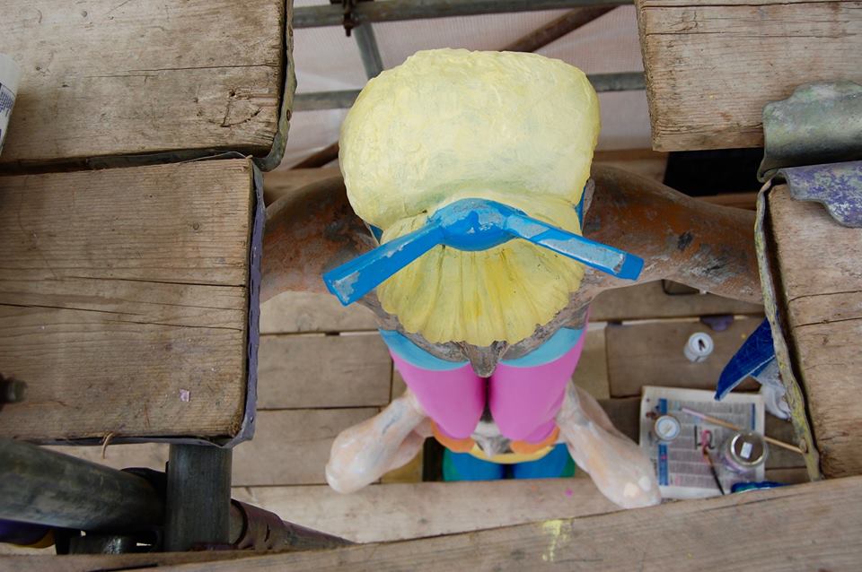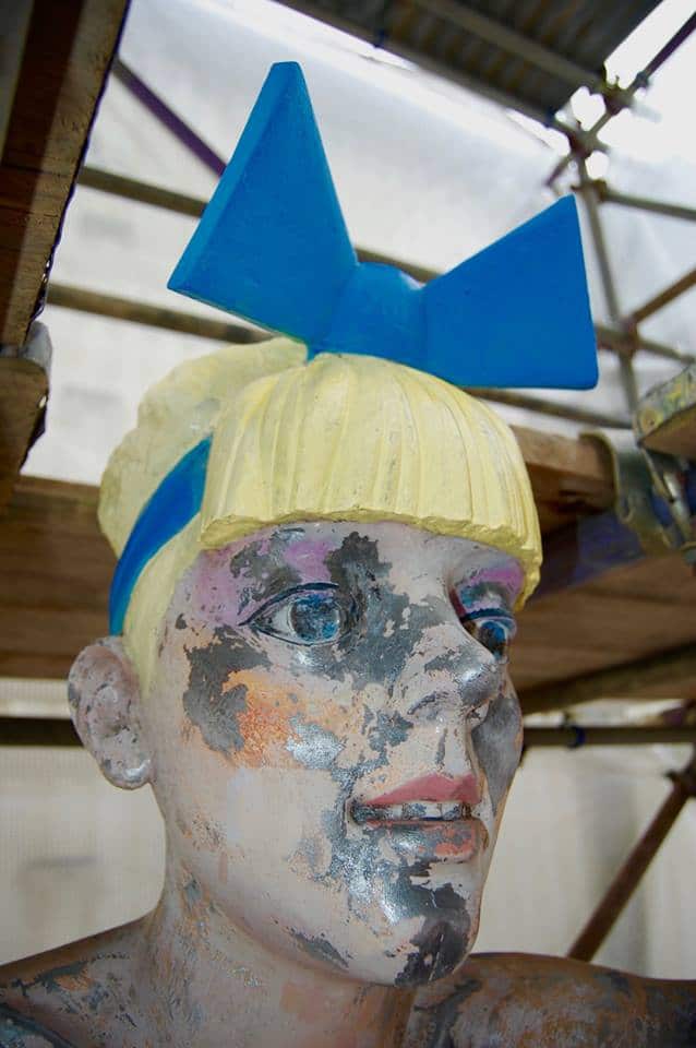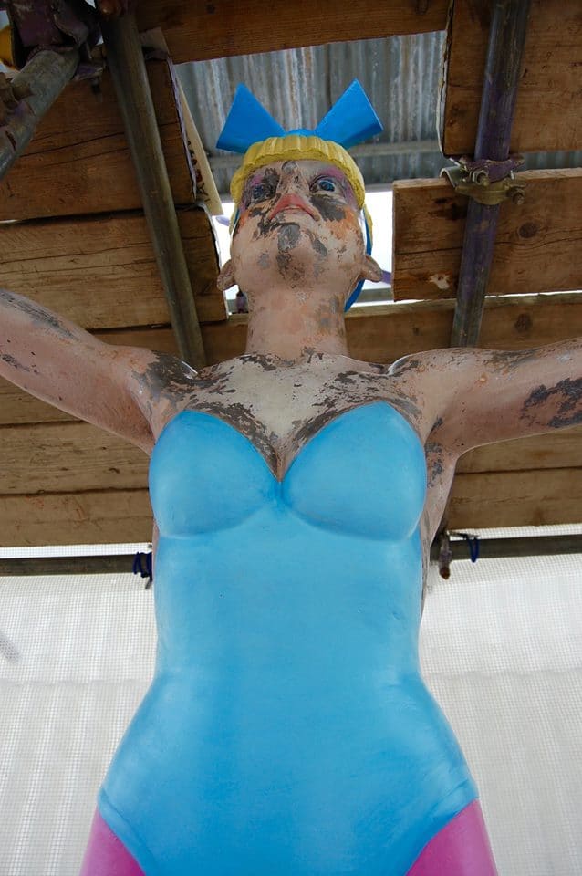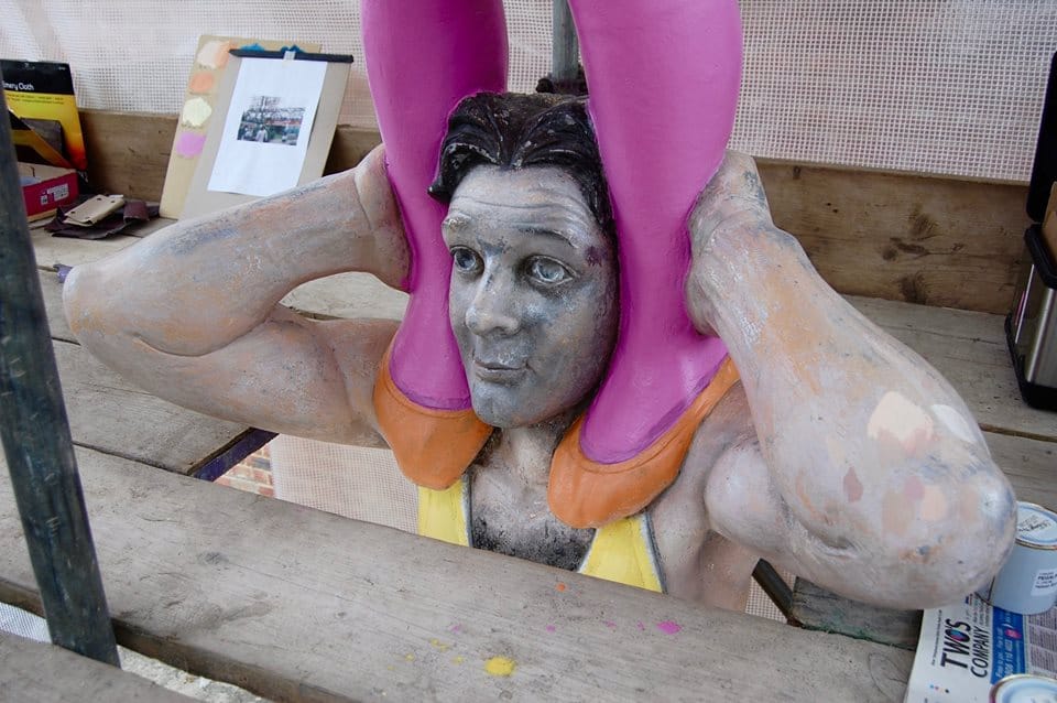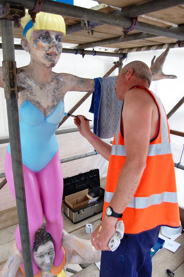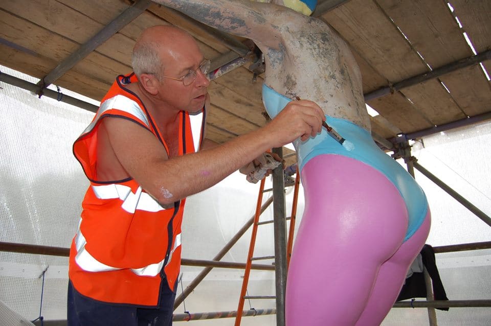 I chanced upon some photos on Facebook of Swindon-based artist Tim Carroll restoring the sculpture when it got moved from its original home in Wharf Green to its current location in a play park in Gorse Hill. This was some time ago I should add.