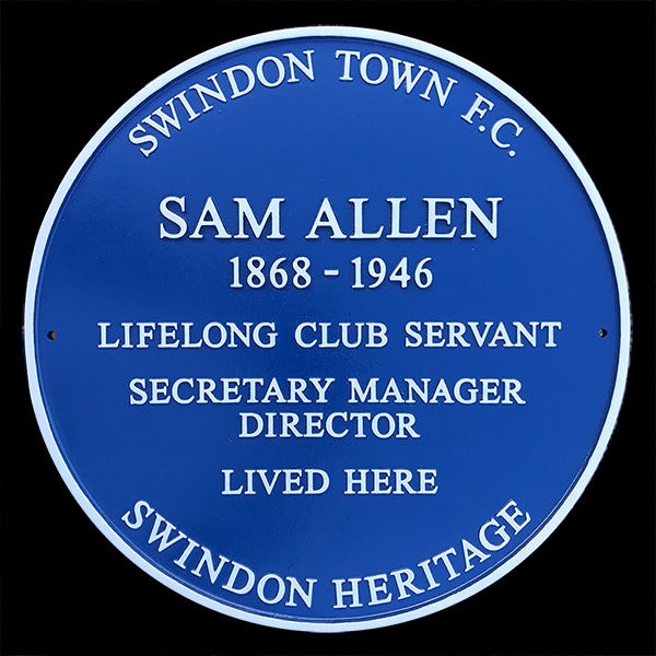 - Sam Allen: ‘Swindon Town manager and football pioneer Sam Allen (the sixth-most longest-serving manager in Football League history), and was unveiled on May 19, 2018, by former Swindon Town footballer John Trollope MBE, and Sam’s granddaughter-in-law, Pat Chapman.