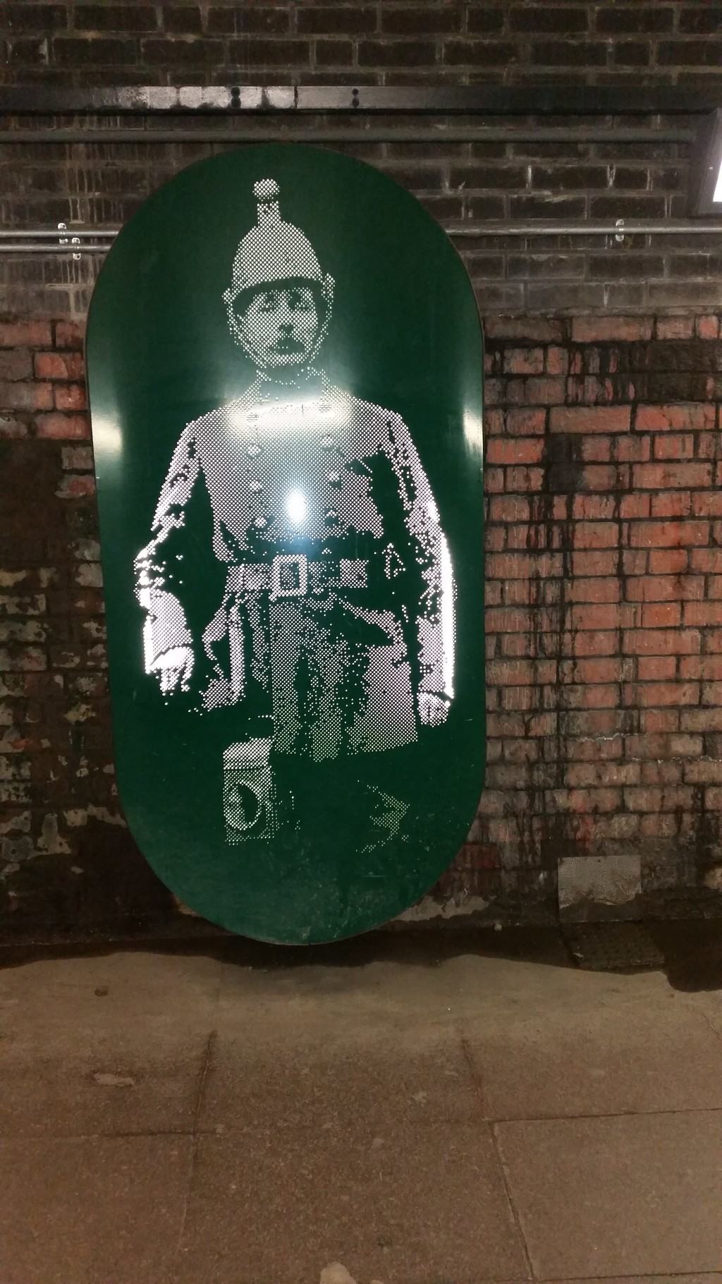 And this light picture installation, put in, in 2012, are a fabulous addition to it. The installation depicts, in green metal light images, railway workers past and present. As I look at them, I think of the men and women, across the years, who used this tunnel to go to work ‘inside’ – as they referred to it.