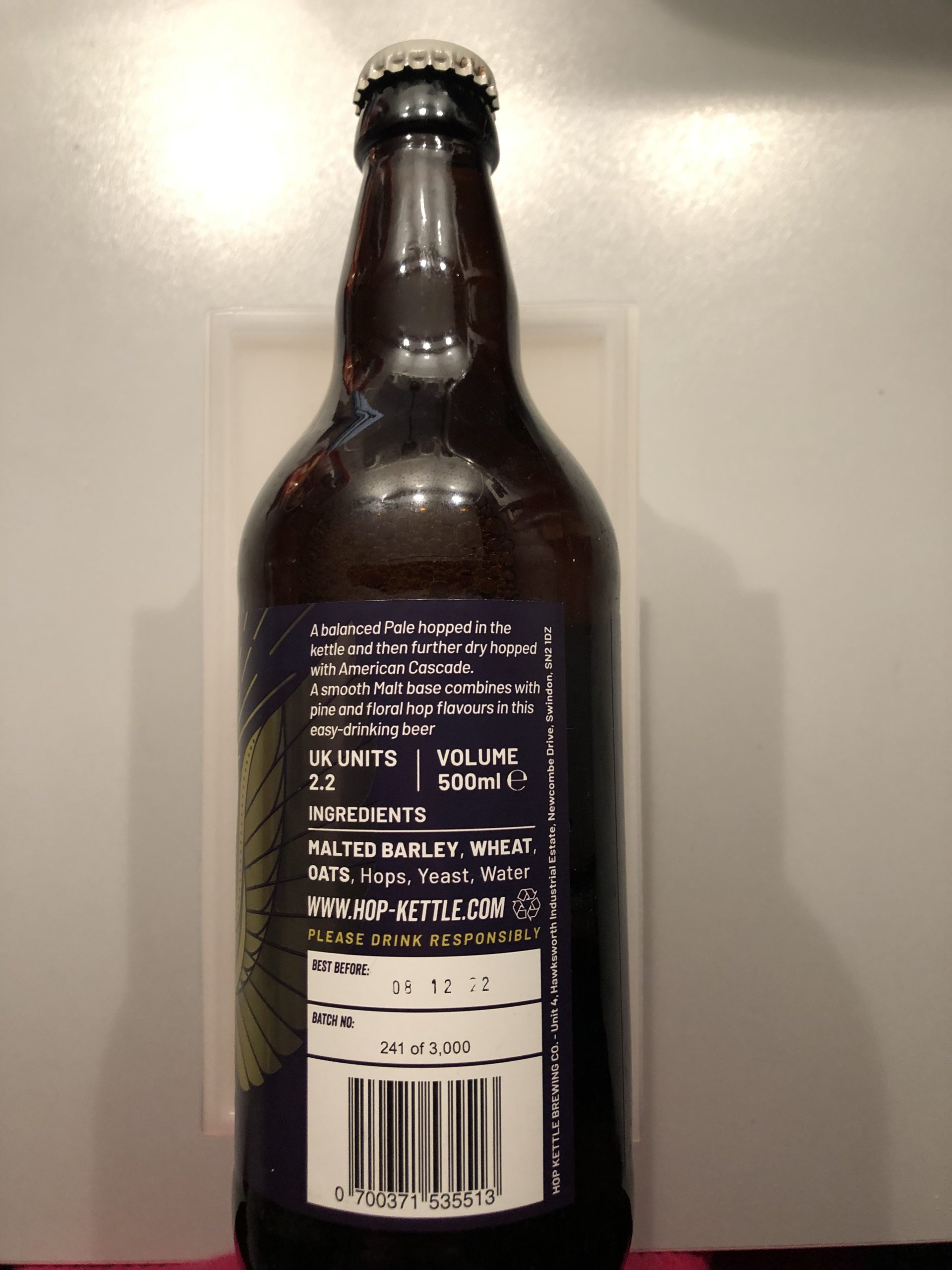 ‘A balanced pale hopped in the kettle and then further dry hopped with American Cascade. A smooth malt base combines with pine and floral hop flavours in this easy-drinking beer.’