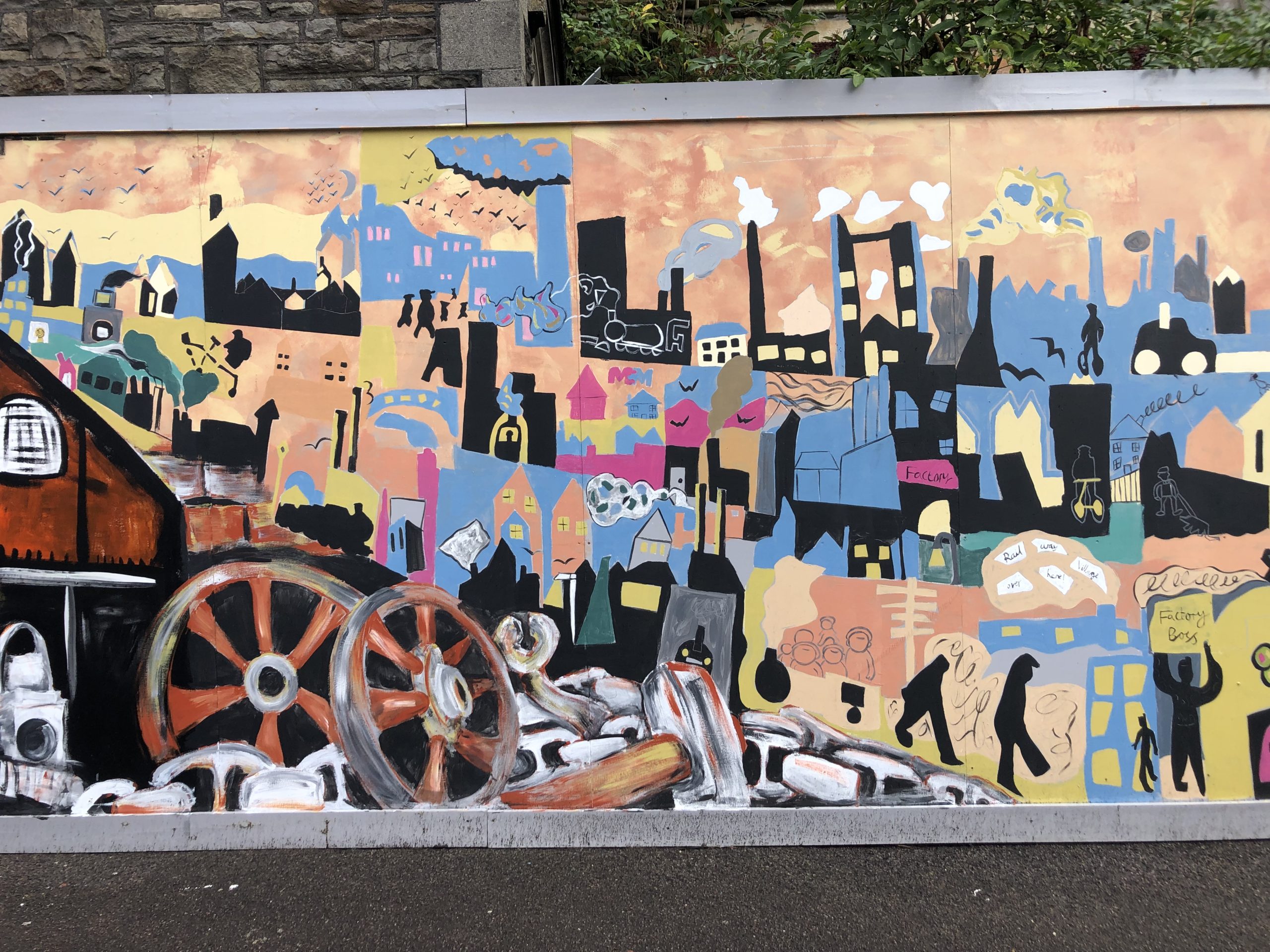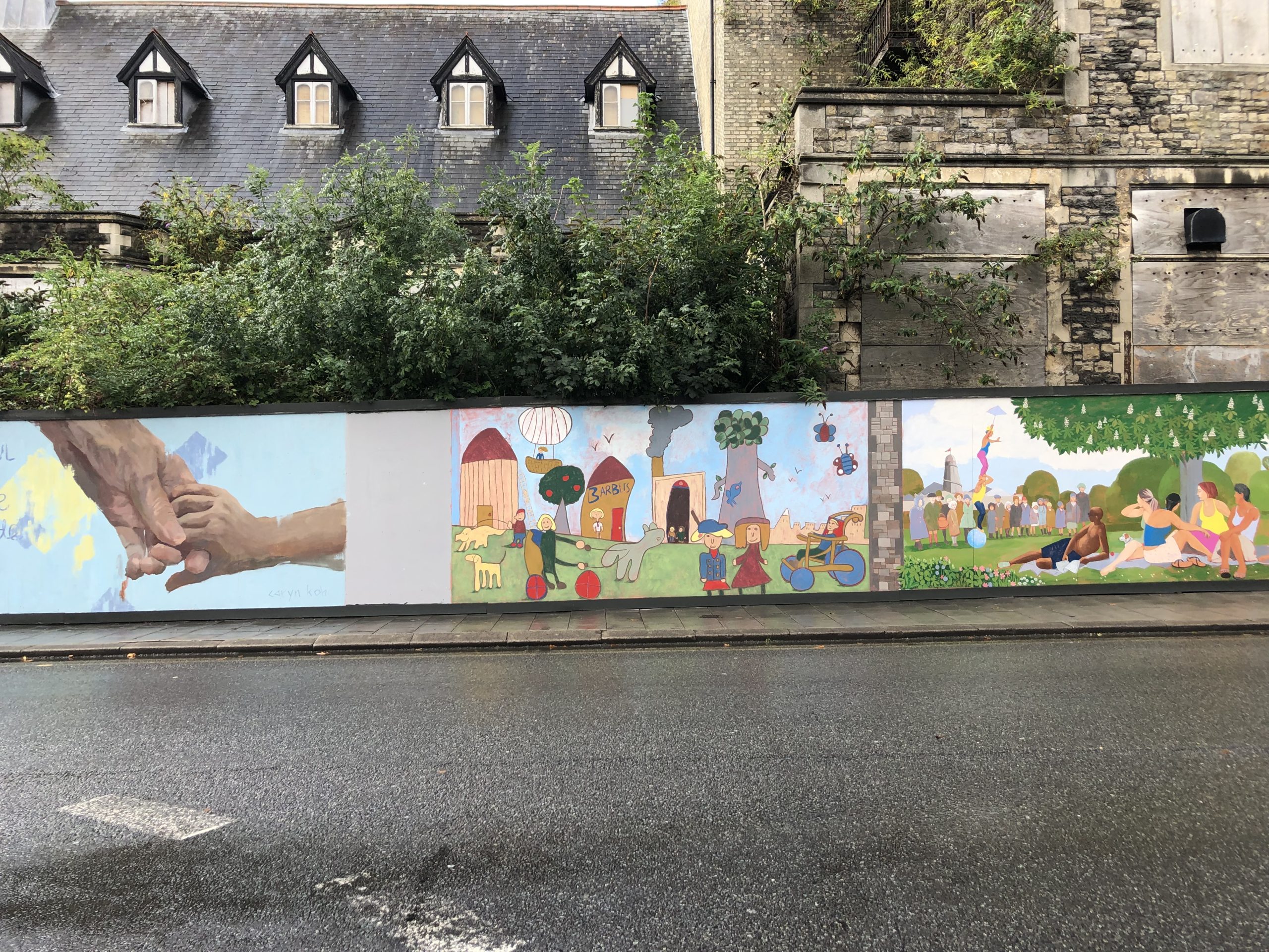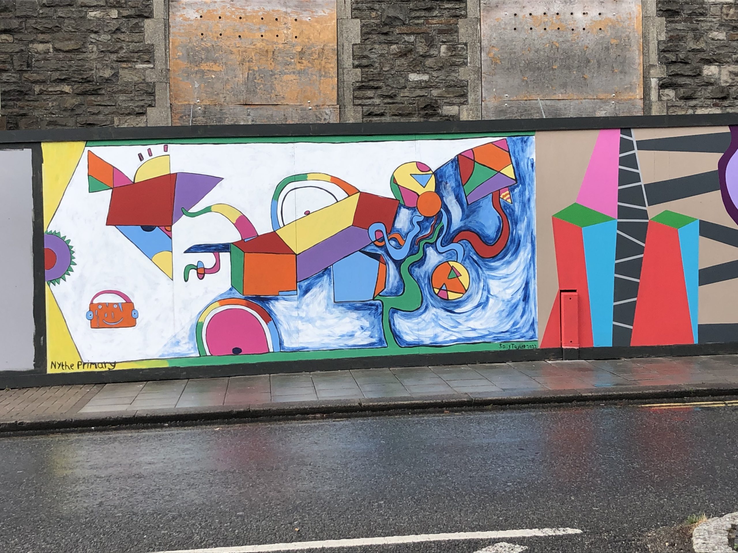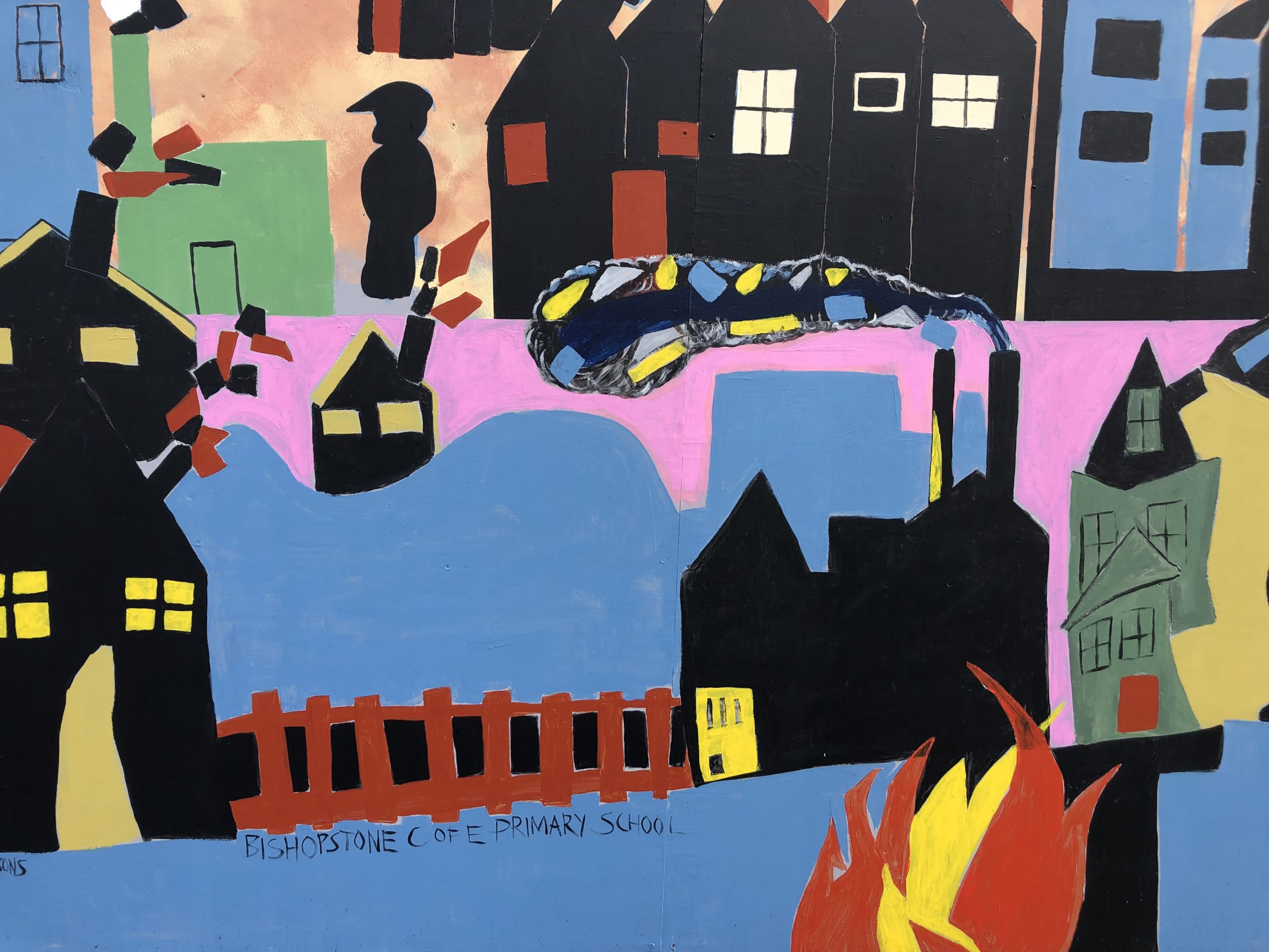 The artists involved went into schools around the borough and spoke to children and encouraged them to produce art. The artists then scaled up the children’s art work and painted it onto the hoardings.