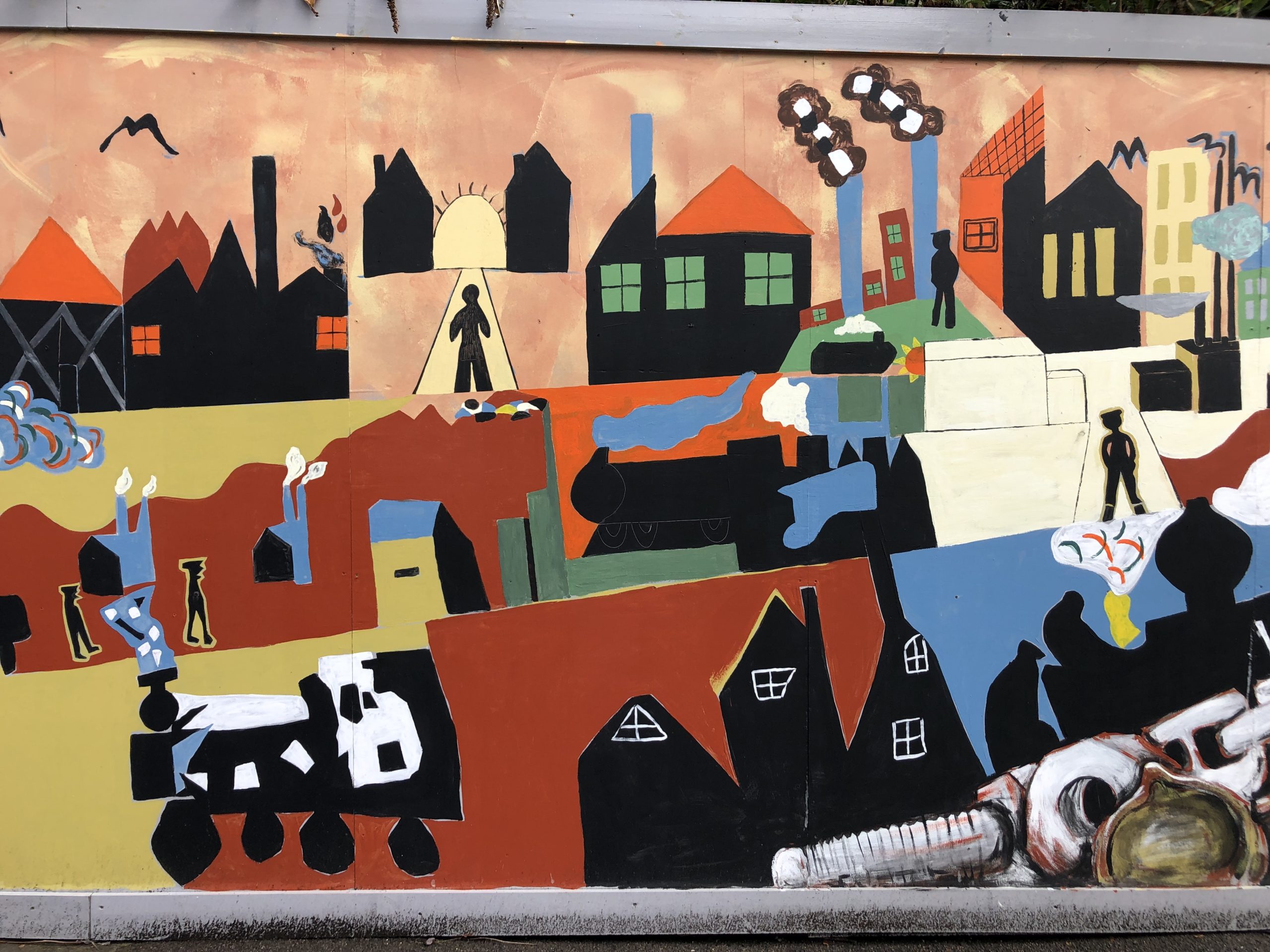 These works are a collaboration between Swindon artists and schools from across Swindon. They’ve produced a series of works based on a variety of themes. Those themes are: the past, drama and art, life in the railway village, work and the area’s early days and the future.