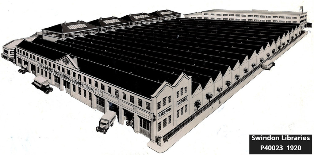 As I pointed out in my piece about what’s left of Old Town’s Corn Exchange, I don’t intend to go overboard with long-gone buildings in this Swindon in 50 More Buildings series. Indeed, I hadn’t thought about covering the Garrard factory at all. But one of Royston Cartwright’s fab Facebook posts about the business prompted me to think I should include it. After all, Garrard was a hugely important industry for Swindon. And it was a rather super 1920s building.