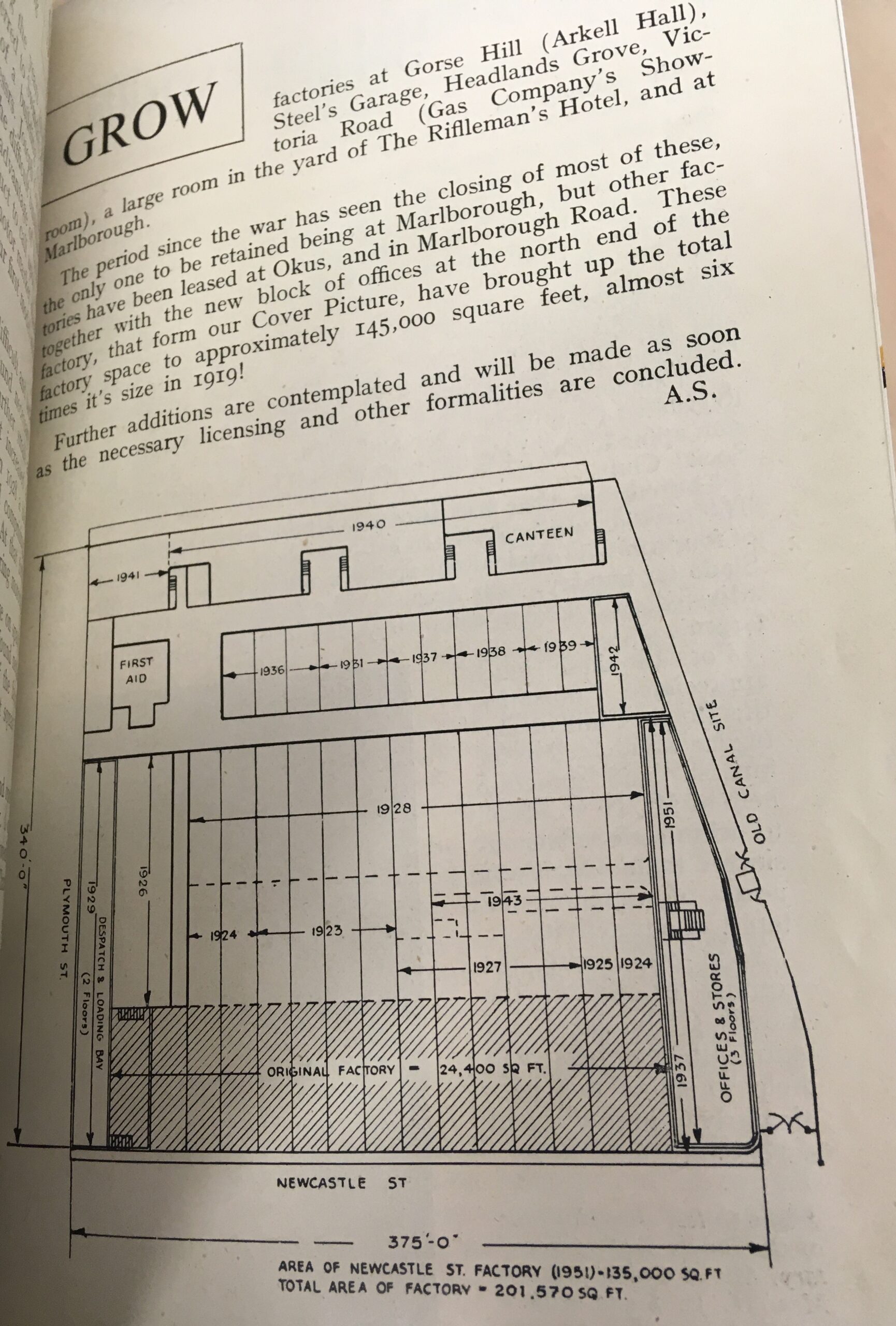 The following year, thanks to pressure on packing and storing their output the need arose to add a double storey block at the south end of the factory.