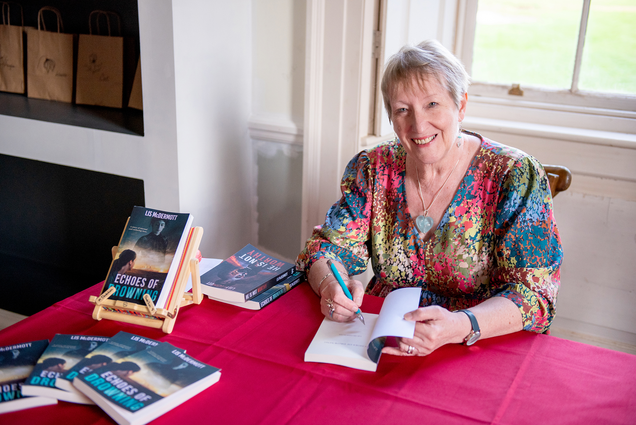 Lis launched Echoes of Drowning on Friday May 10th, 2024, at the stunning Georgian manor house, Burderop Park, owned by local property developer Arthur Dallimer. Lis donated proceeds from ticket sales to Arthur’s chosen charity Penny Hooks Farm Trust – supporting adults with autism.
