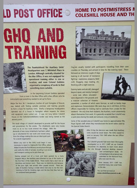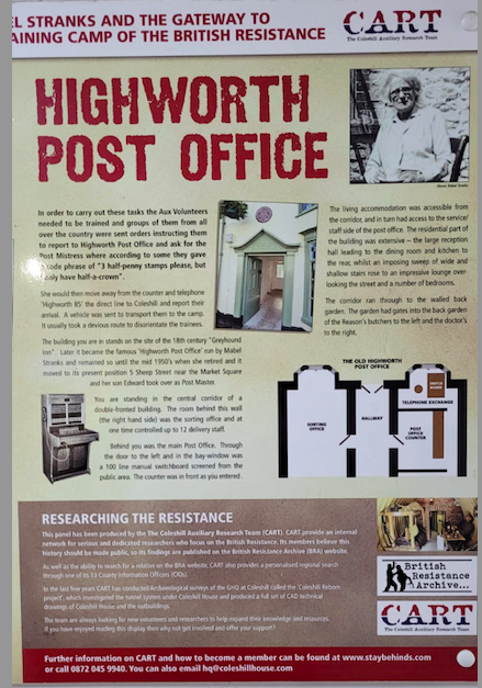 I’m not going to reproduce the whole of the British Resistance Archive blog here. You can follow the link and read it for yourself. AND – visit the old post office and read the information board there. See below.