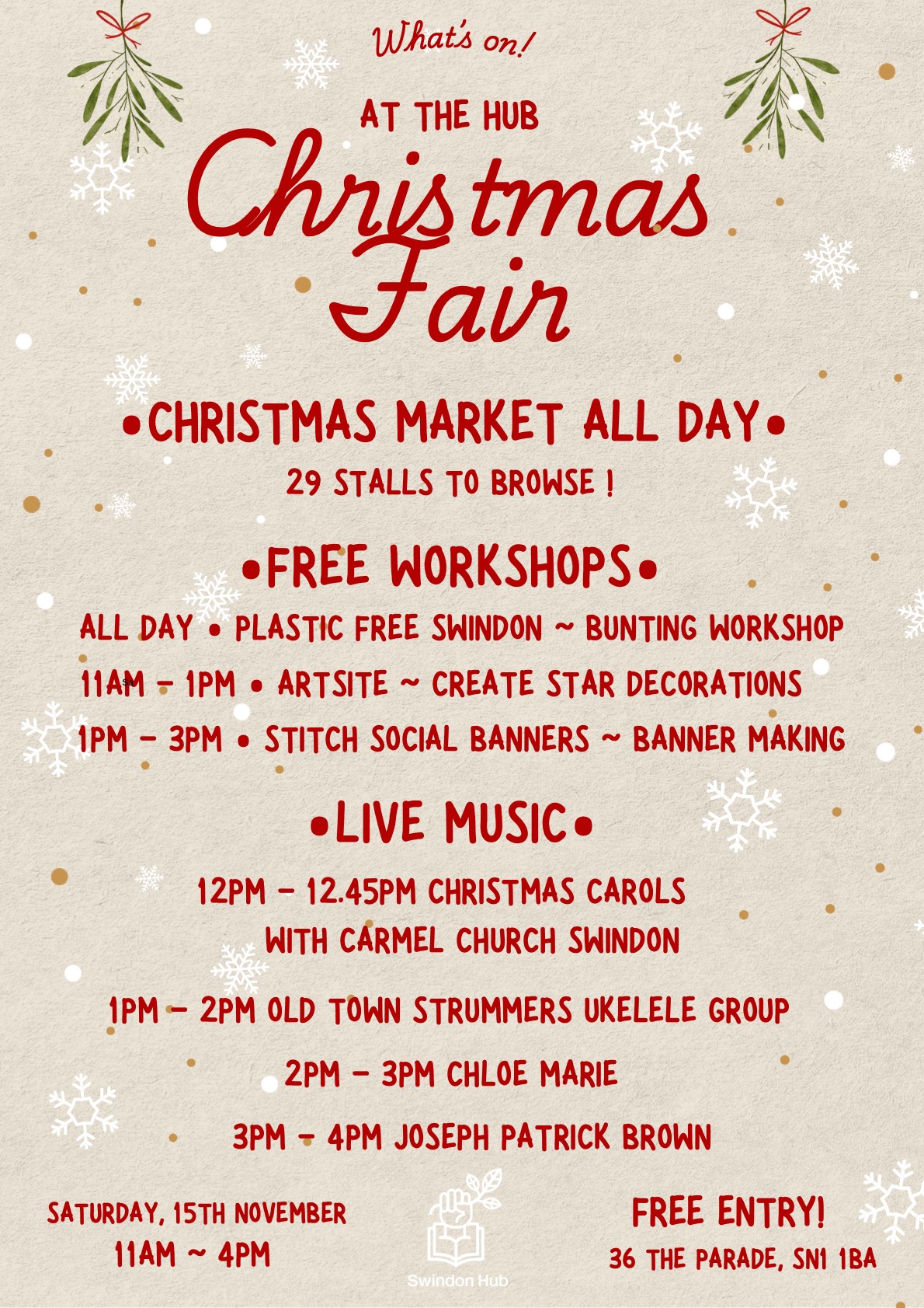 Swindon Hub is inviting the local community to kick off the festive season in style with its Christmas Fair. It promises a joyful celebration filled with music, creativity, and Christmas cheer!