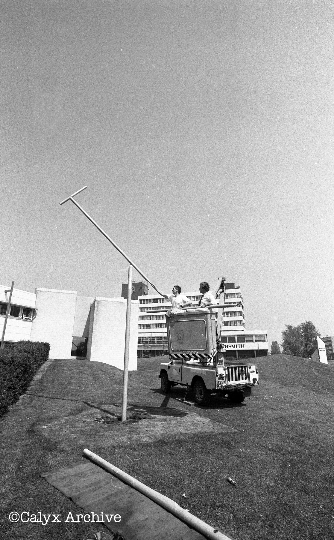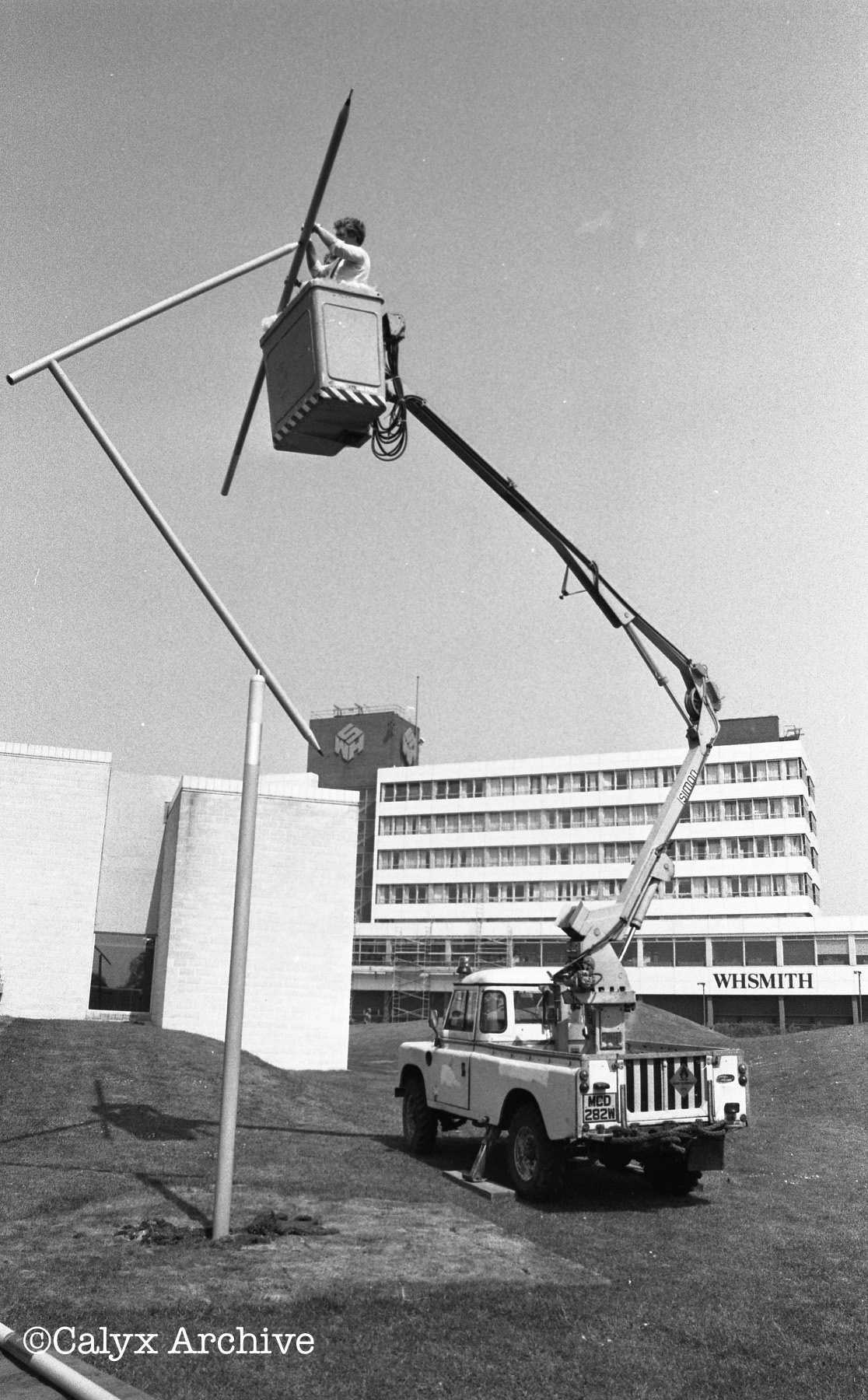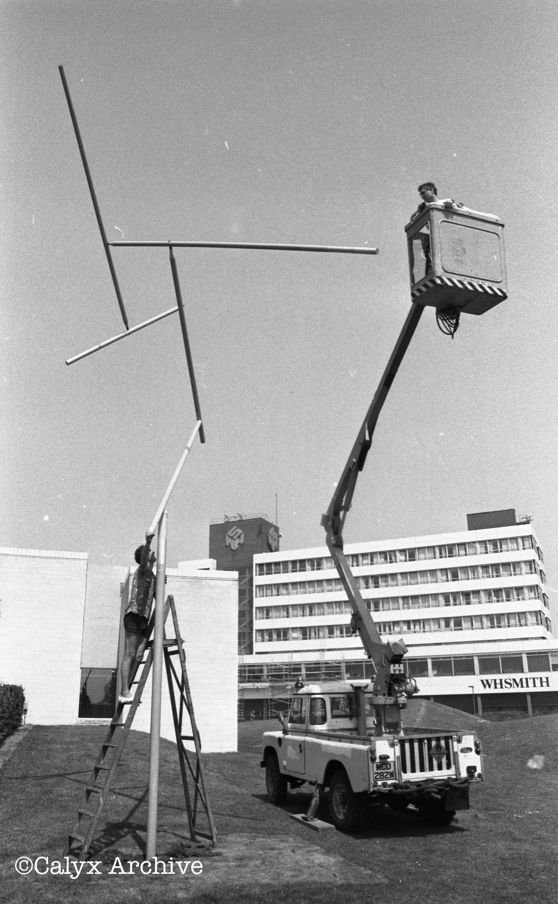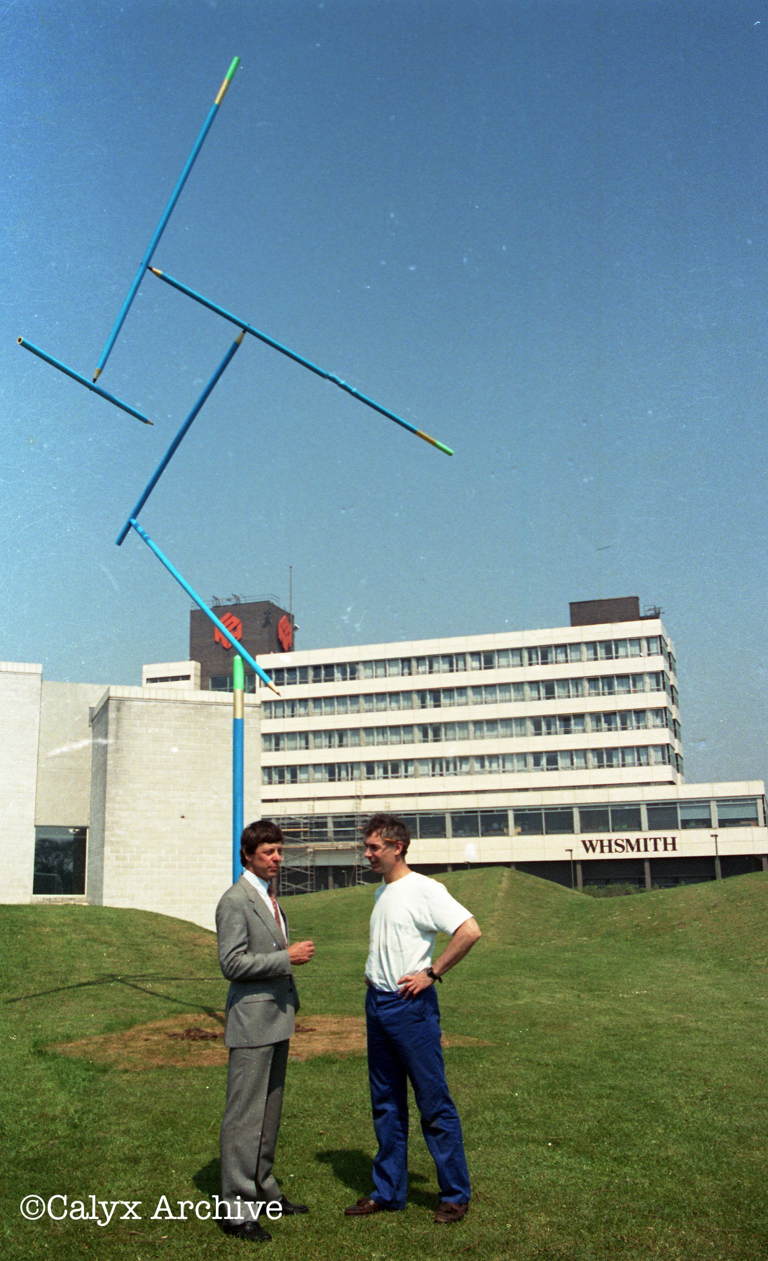 A rather funky public art piece once stood outside the WH Smith offices called Kinetic Pencils, by Peter Logan – installed in 1991. Sadly they’re long gone but below, for your delectation and edification, are some wonderful archive photos of the kinetic pencils from Richard Wintle.