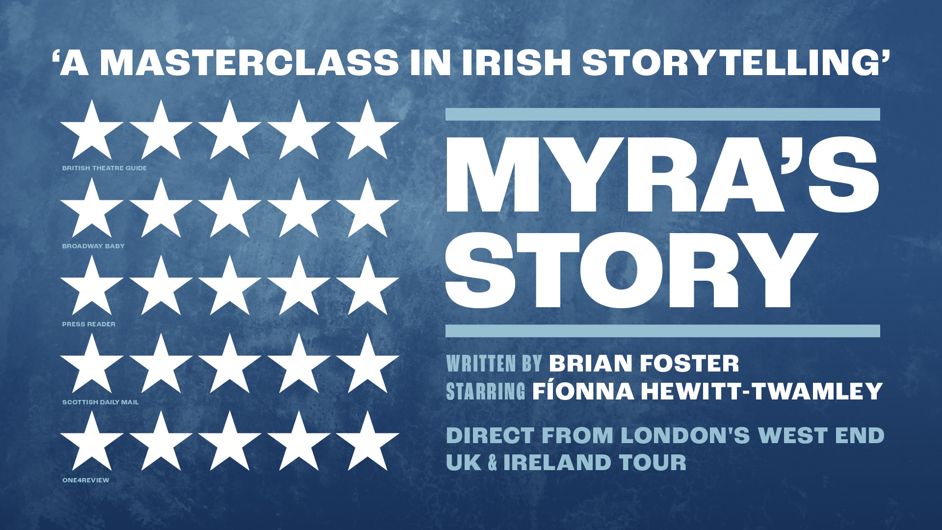 Myra’s Story tells the unforgettable tale of a middle-aged homeless alcoholic struggling to survive on the streets of Dublin as she begs from passers-by on the famous Ha’penny Bridge. Written by Irish playwright Brian Foster and starring acclaimed actor Fíonna Hewitt-Twamley in her “vivid, virtuoso performance” (WhatsOnStage) as Myra who through her gripping performance plays a variety of larger-than-life Dublin characters, in this turbulent piece.
